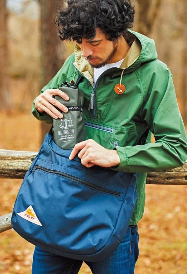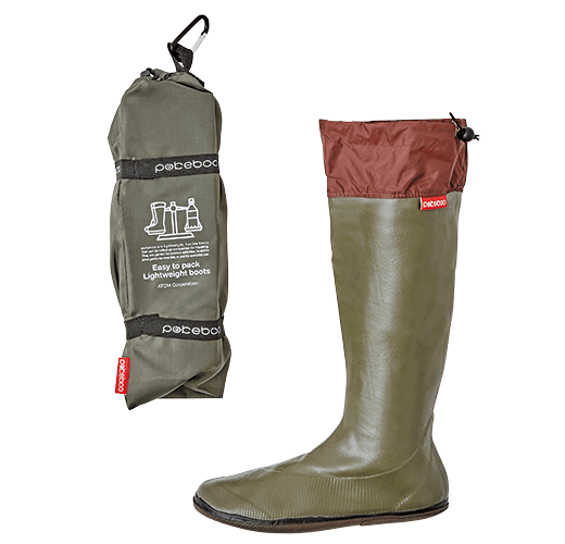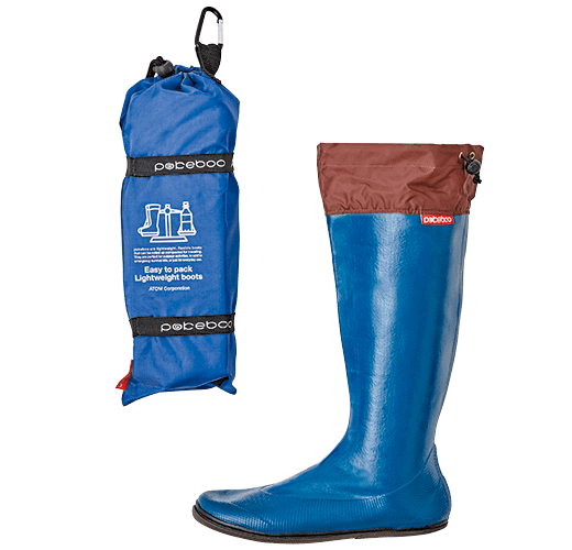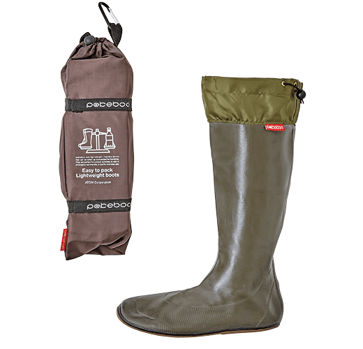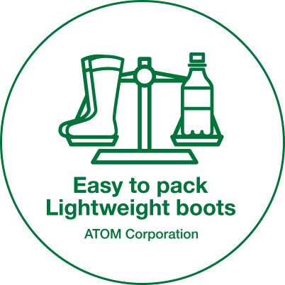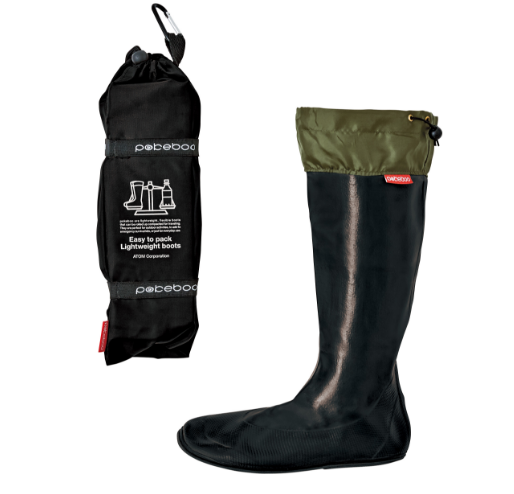 収縮性と防水性に優れた天然ゴムのブーツです。足全体に吸い付くようなフィット感と快適な履き心地に加え、なんと両足でペットボトル1本分相当の軽量化に成功しました。専用のブーツバックへパッカブルに収納でき、カラビナ付きなので持ち運びもラクラク。野外フェスやキャンプにフィッシングなど、さまざまなアウトドアシーンで活躍します。また急な悪天候やゲリラ豪雨にも対応でき、アーバンアウトドアでもお洒落に履きこなせるブーツです。